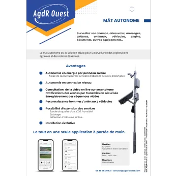 Nous installons des caméras sur mât pour assurer une vision longue portée afin d'avoir un regard sur vos cultures, vos systèmes d’arrosage et des centrales d’alarmes pensées pour vos bâtiments isolés.